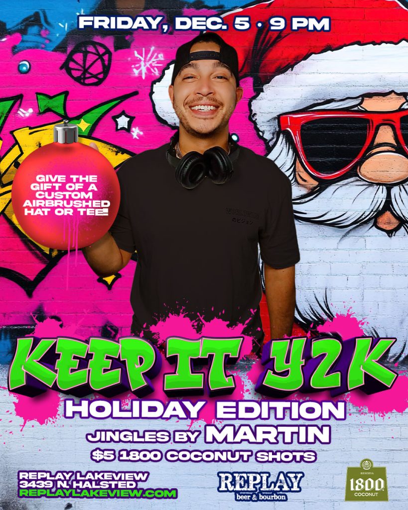 We’re throwin’ it way back this Friday with KEEP IT Y2K: Holiday Edition! DJ Martin’s bringing the jingles, and Chicago Party Eventz is popping up with custom airbrushed hats and tees. They make a PERFECT HOLIDAY GIFT!
