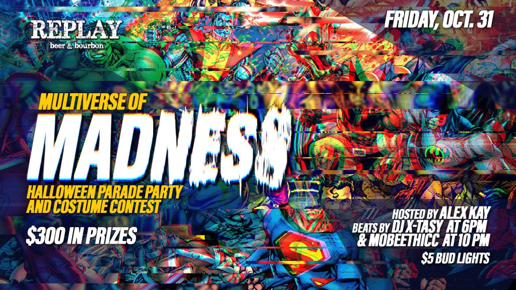 Step into the Multiverse of Madness this Friday, Oct. 31 at Replay Lakeview! The streets are buzzing for the Halloween Parade Party and our annual Costume Contest with $300 in prizes!