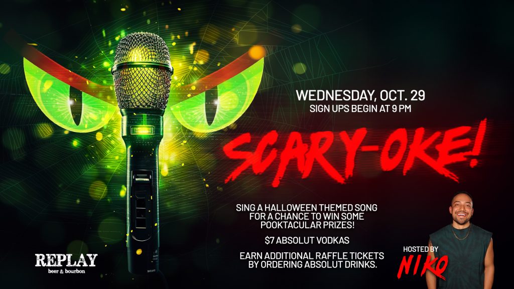 It’s time to scream… sing your heart out! Join Niko this Wednesday for SCARY-OKE — our Halloween-themed karaoke night where your haunting vocals could win you spooktacular prizes!