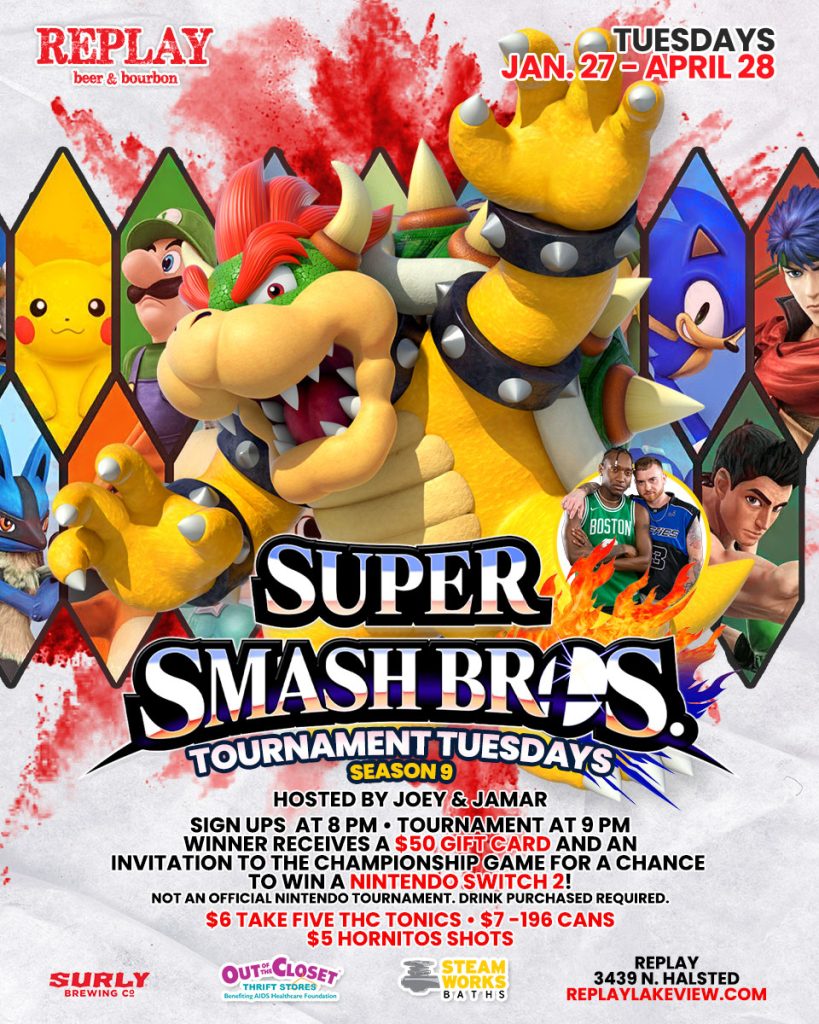 Season 9 is ON. 🎮🔥 Super Smash Bros Tournament Tuesdays are back at Replay Lakeview.